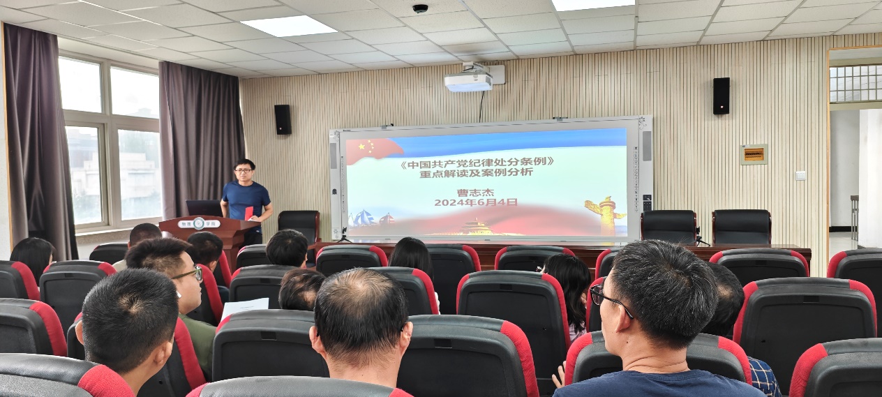 2024年6月4日,国产传媒 全体党员在博远楼321会议室开展党纪学习教育书记讲党课活动。本次党课由学院党总支副书记曹志杰同志主讲,题目是“《中国共产党纪律处分条例》重点解读及案例分析”。结合《中国共产党纪律处分条例》,曹志杰同志强调党的纪律是党的各级组织和全体党员必须遵守的行为规则。在日常工作中,始终牢记自己的第一身份是共产党员,坚定信念,明确责任,以铁的纪律护航学院高质量发展