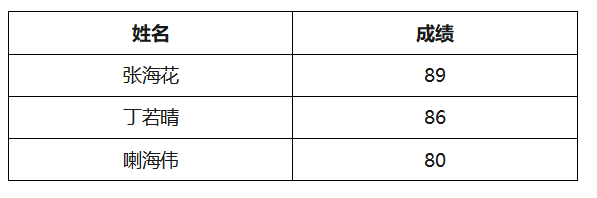 现将成绩公示如下: