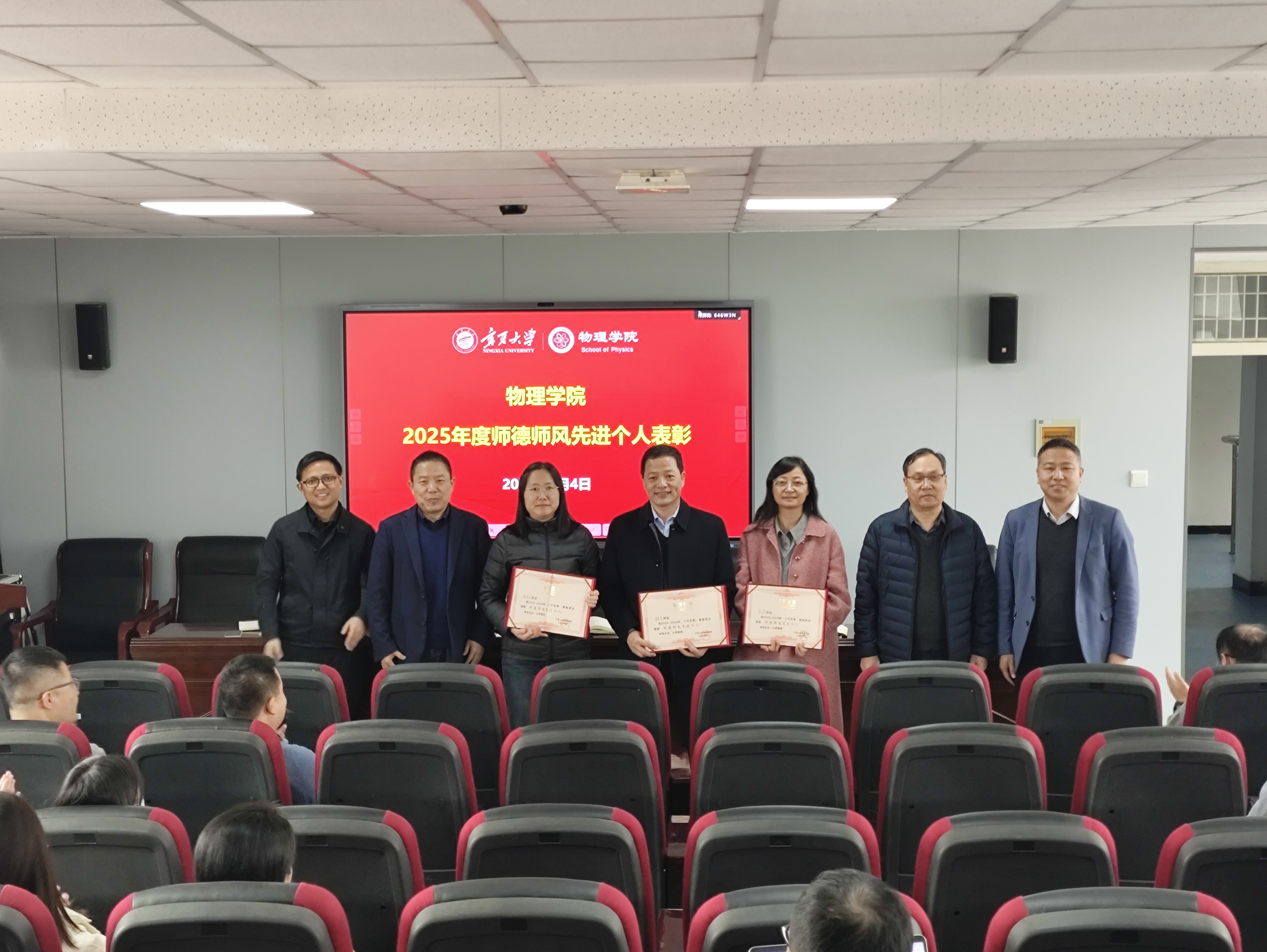 会议首先表彰2025年度师德师风先进个人,学院领导为获奖教师颁奖,号召全体教职工以先进为榜样,坚守育人初心、涵养高尚师德。随后,会议传达学习学校及全国、全区教育相关会议精神,总结学院2025年工作,部署2026年春季学期重点工作,启动树立和践行正确政绩观学习教育。