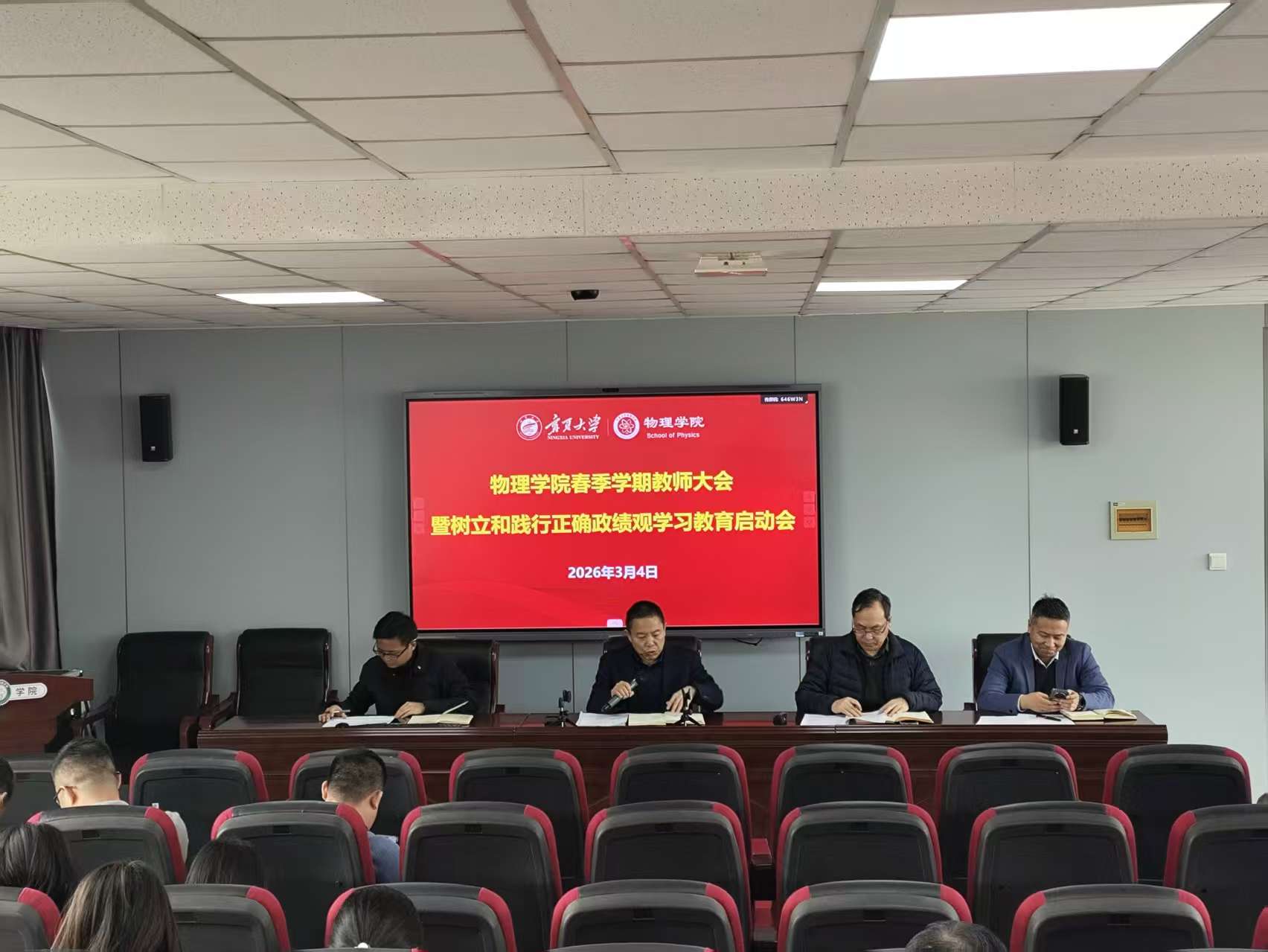 2026年3月4日,国产传媒 召开2026年春季学期全体教职工大会暨树立和践行正确政绩观学习教育启动会。会议由学院党总支书记王恒主持,院长和各分管领导就新学期重点工作作具体安排,全体教职工参加会议。